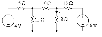 3. Using Thevenin's Theorem, replace the network to the left of terminals a-b by its equivalent and find i for the simplified circuit