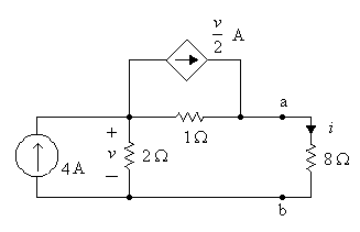 5. Find v by replacing the network to the left of terminals a-b with it's Thevenin equivalent circuit