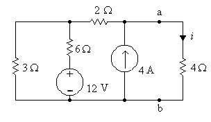 3. Using Thevenin's Theorem, replace the network to the left of terminals a-b by its equivalent and find i for the simplified circuit