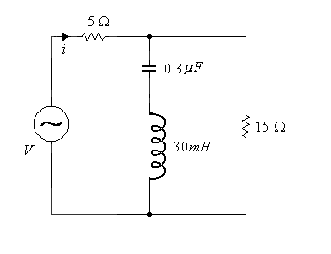 1. (a) At what frequency will the main current i be in phase with the voltage V ?