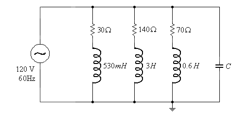 2. Find a value for C so the main current (current through the source) is in phase with the voltage