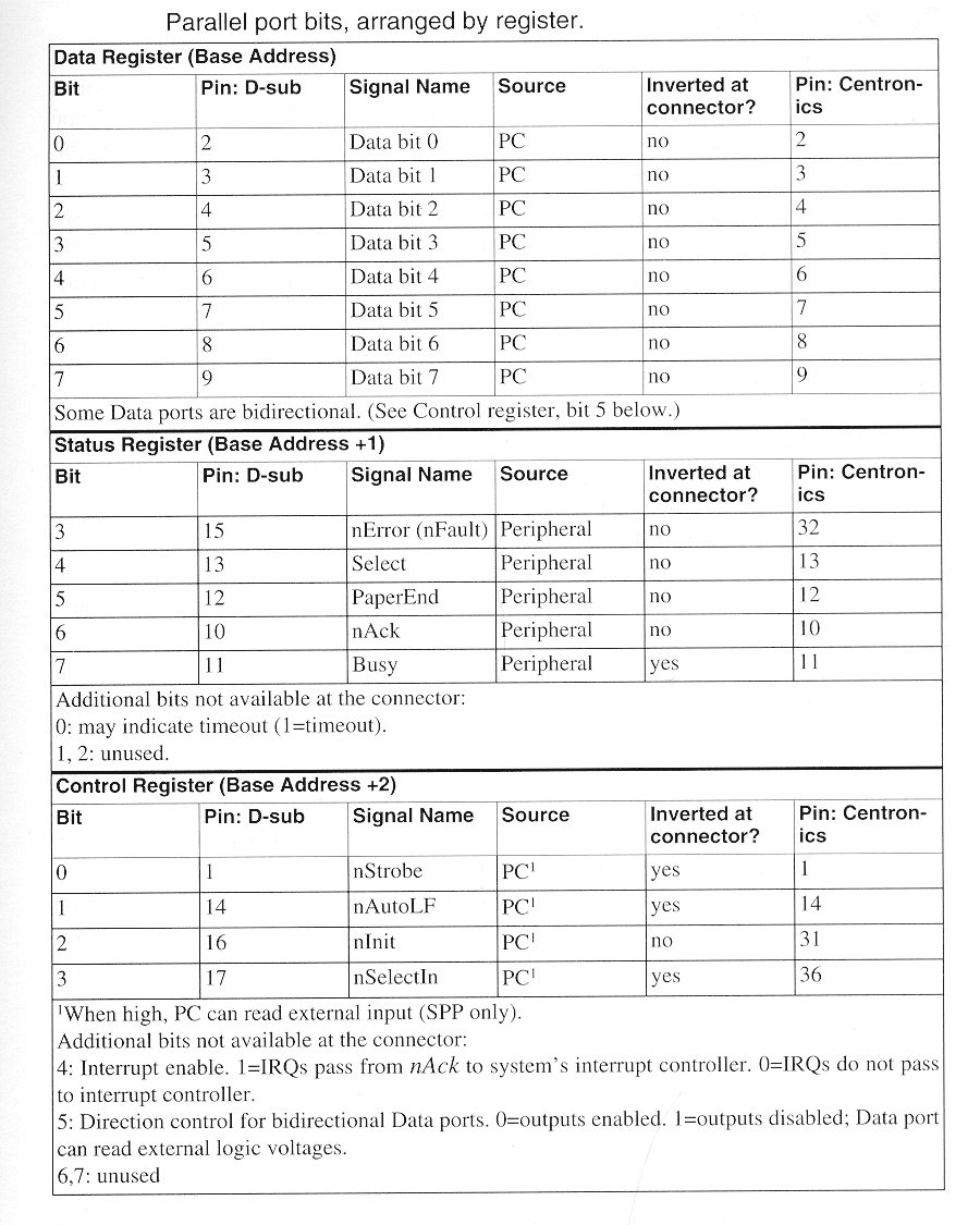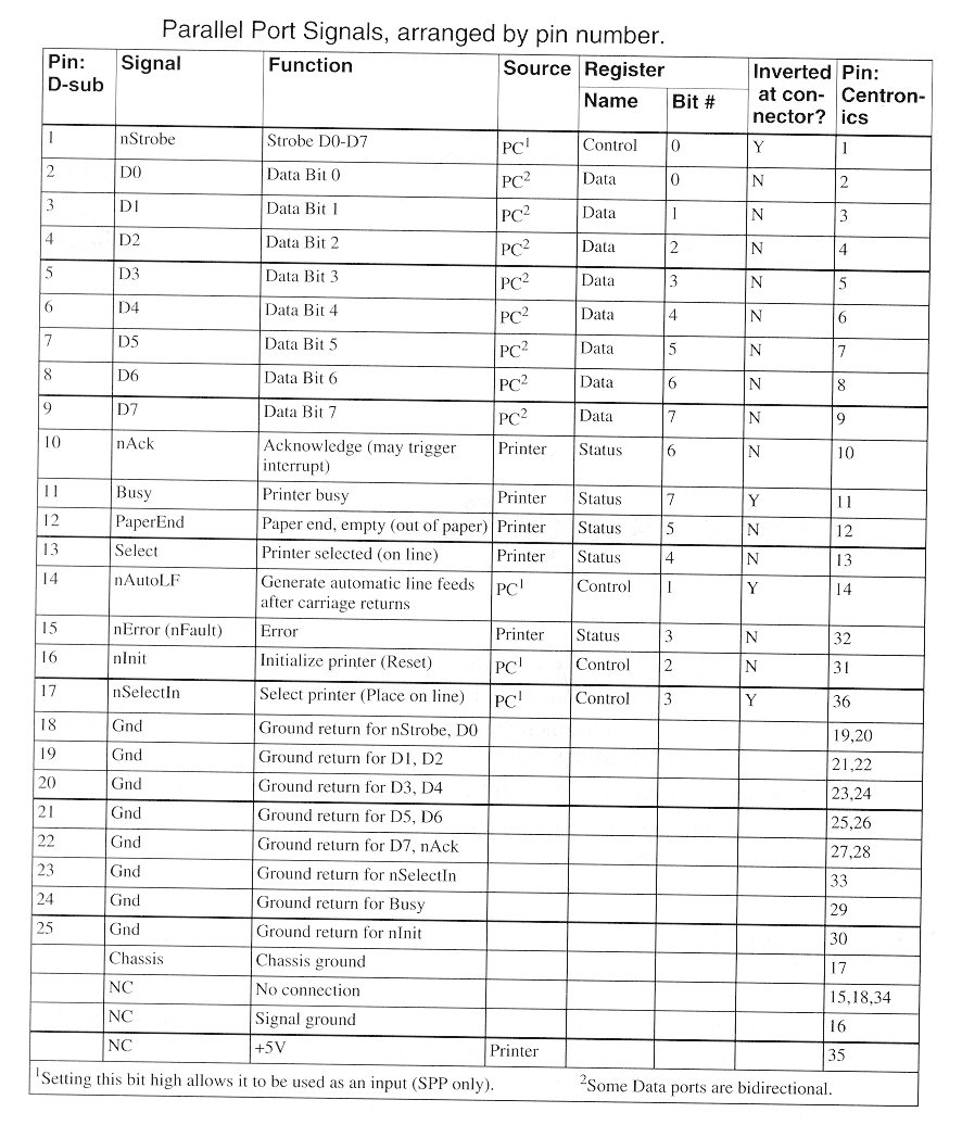 the signals, arranged by pin number
