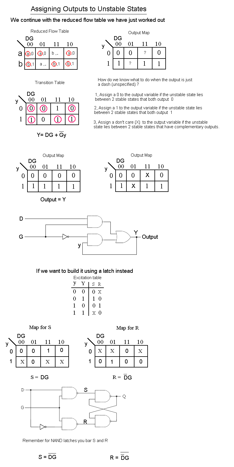 Assigning outputs to unstable states
