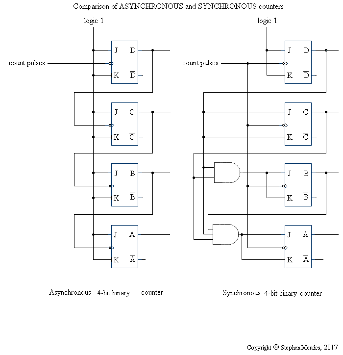 Comparison of synchronous and asynchronous counters
