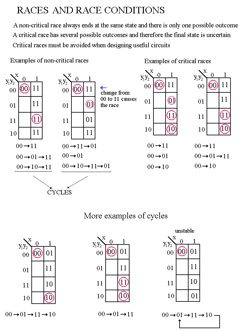 Finding races and cycles in transition table