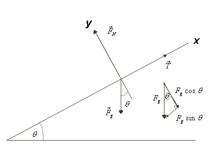 and the COORDINATE SYSTEM is tilted so that the x-axis is ALONG THE INCLINED PLANE