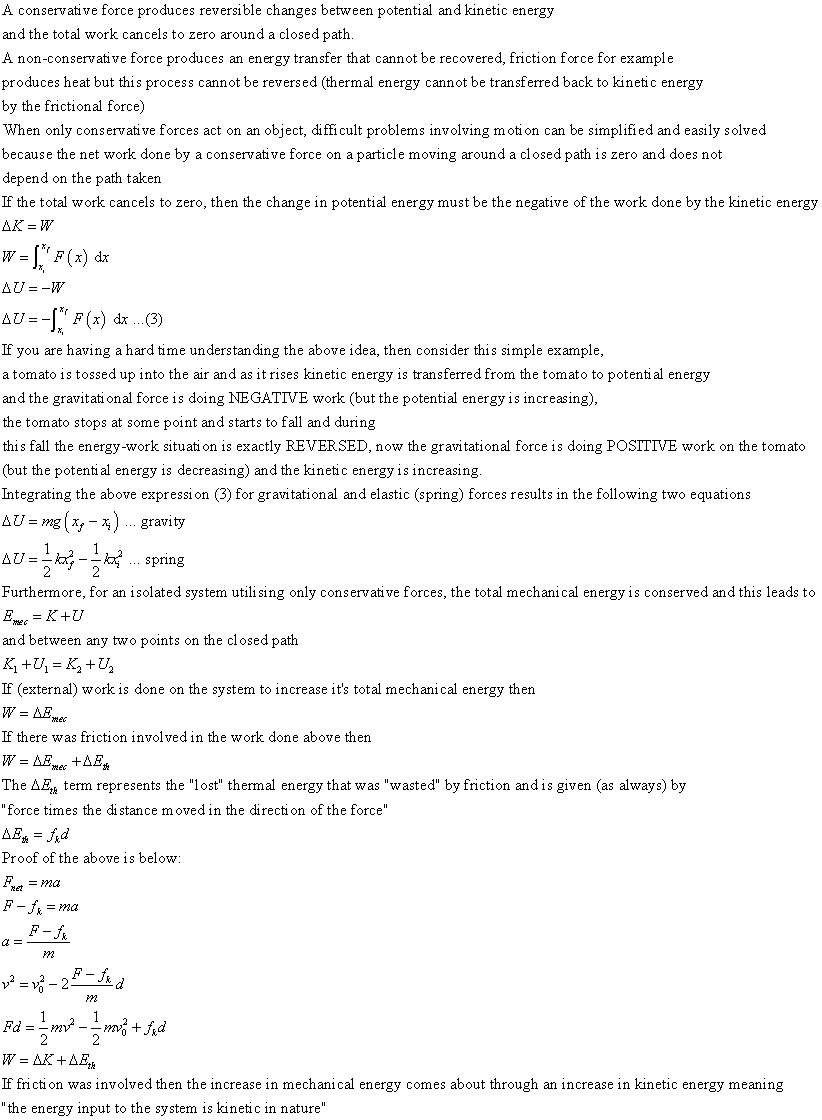 Potential Energy and the Conservation of Energy
